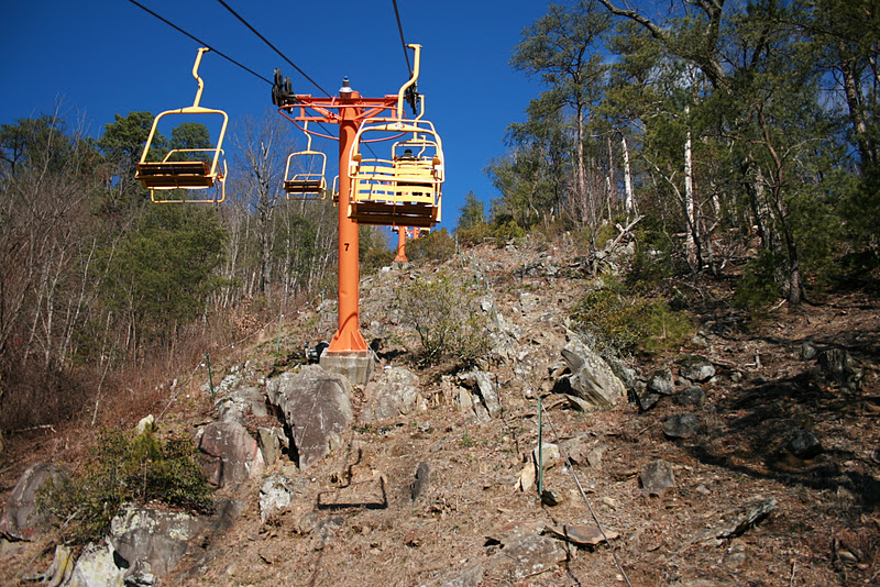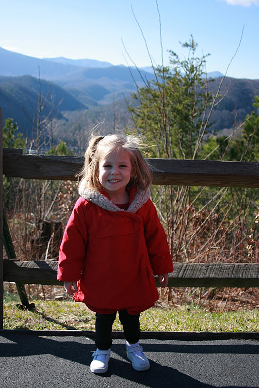 Last year when we came to Gatlinburg we had LOTS of snow. So much snow that we couldn't even get to our cabin the first day and had to sleep in a hotel that first night. But this year, unfortunately we haven't seen much snow but it has made travel alot easier. The weather at night has been kinda chilly but during the day in the sun it is in the upper 50's and feels perfect with a jacket on. This morning we got out before the crowds got bad and rode on the skylift. The kids have looked forward to this since we got here!
