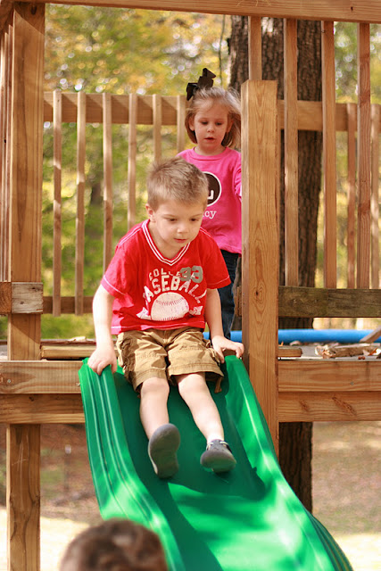 Wow the weather the past two days has been amazing and we knew it was short lived (it will drop almost 20 degrees by tomorrow) so we have spent most of our time the last few days outside as much as we can. Wow we just worked on our yard (leaves) Saturday and you already can't tell. The leaves are everywhere and most of the trees look as if they haven't lost a single one. I am reminded every year at this time we live on alot of land...with alot of trees....whew.