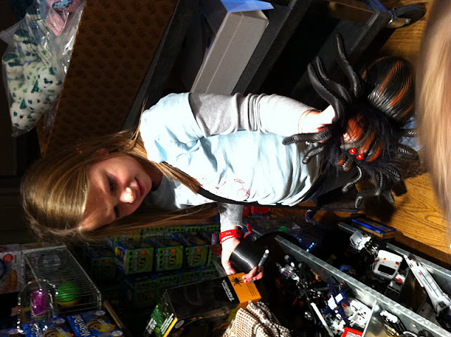 We were at Cracker Barrel the other day and Jay picked up this big fake tarantula and put it down on the ground behind Lucy.  You would have thought a black bear was after her!!!!  She squealed so loud people began looking at us from all directions.  And one old lady that was working in the toy section gave us a look that meant something really ugly!  We could not quit laughing...after we calmed Lucy down first and put the crazy spider away haha!